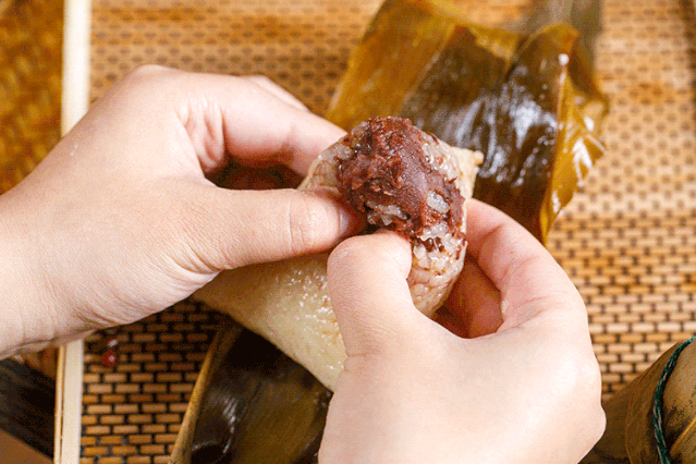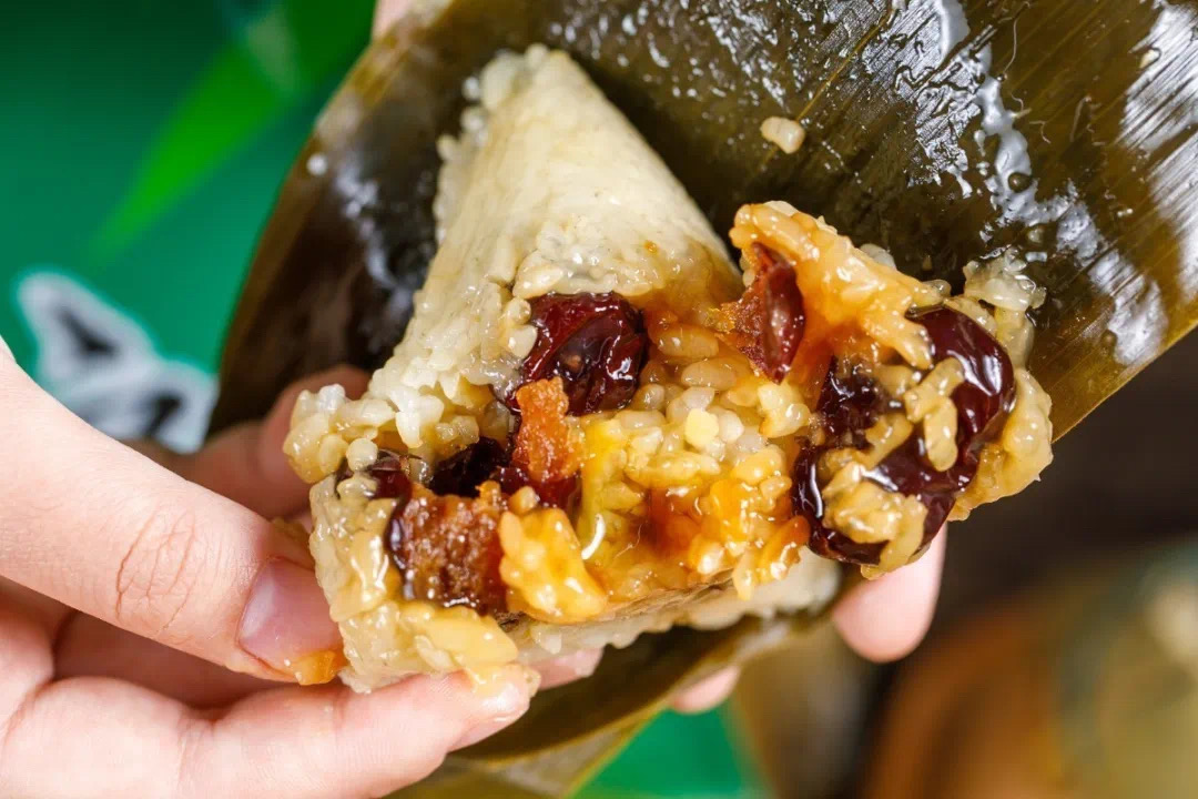 酱红油润的颗颗红枣镶嵌于白色的糯米之中,香飘四溢,彰显星空(中国)官方经典北方粽的本色。