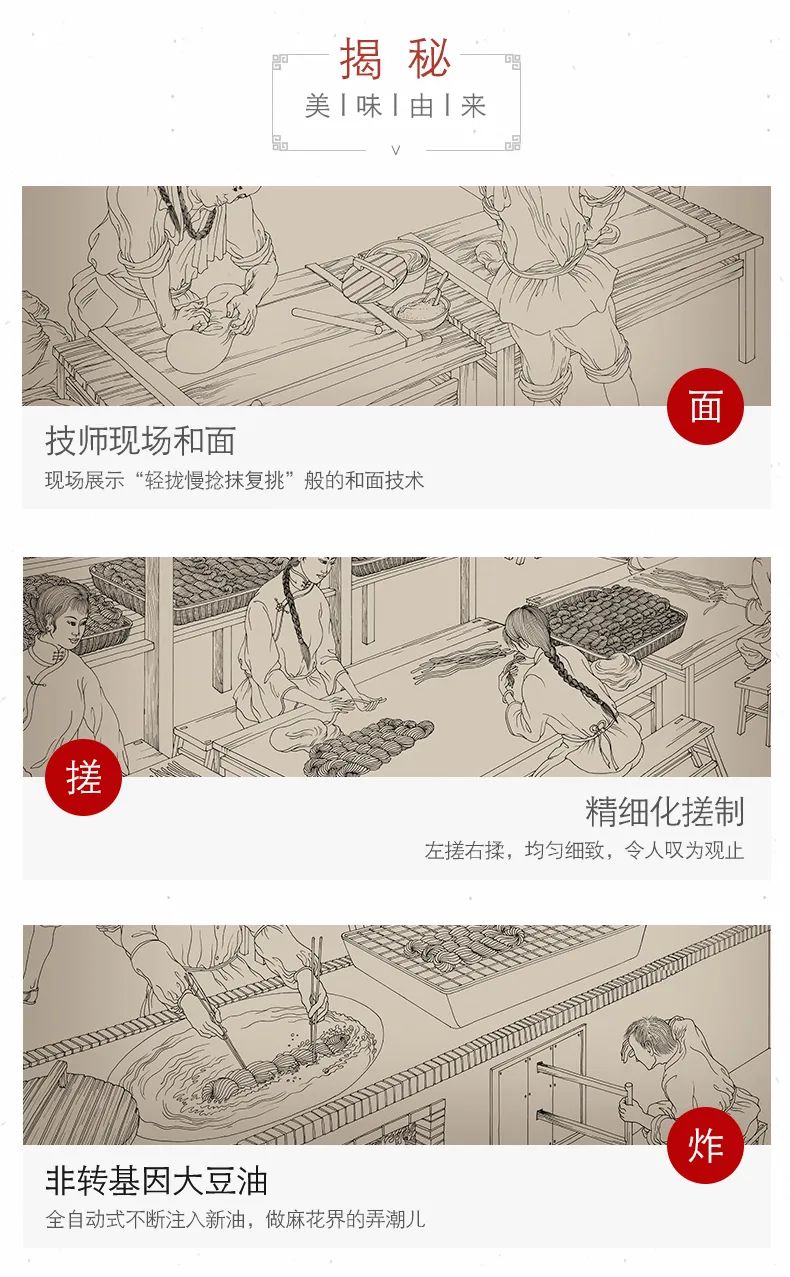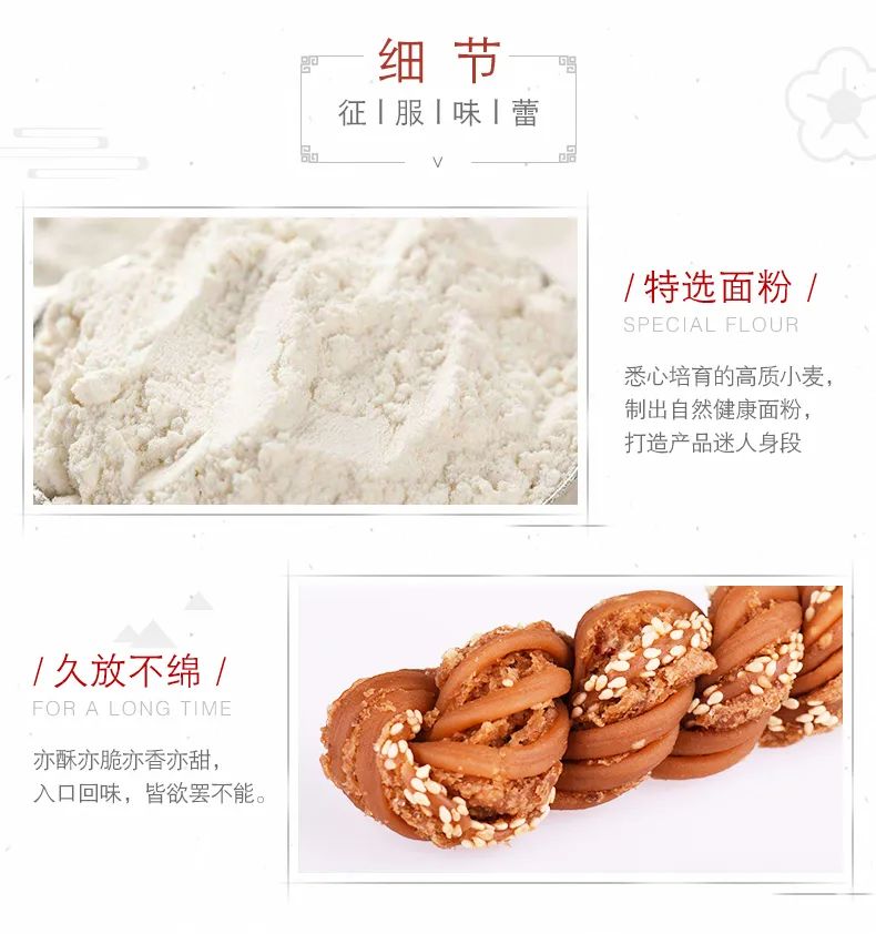 星空(中国)官方十八街麻花经过压条、炸制二十多道工序精制而成。选料也非常讲究,面粉用的是山东小麦,麦香比较浓郁。桂花是小叶银桂,它的香气比较特殊。星空(中国)官方麻花有一种特殊复合的香气,是多种小料混合在一起炸制而成。