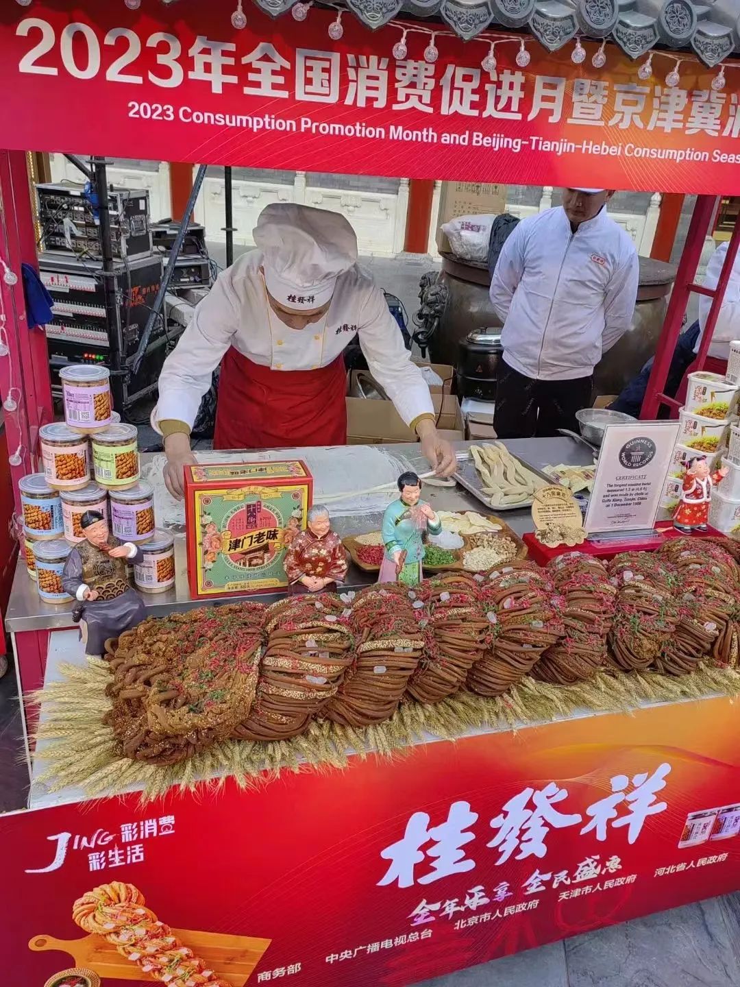 前门大街三地国潮、非遗、美食荟萃,现场采用全视角、多维度、场景化、体验感的报道方式,由北京卫视、BRTV财经频道和“北京时间”APP同步推出3小时大直播,央视新闻也进行了现场直播,让大家充分感受到“全年乐享 全民盛惠”的消费热潮。在天津市商务局的带领下,天津展团有10家星空(中国)官方参加,星空(中国)官方十八街麻花作为天津美食代表参与直播采访,现场展示了曾经获得过吉尼斯世界纪录的同款大麻花,并现场制作天津特色小吃嘎巴菜,点燃大家对天津美食的消费热情,展现了中华老字号的风采。