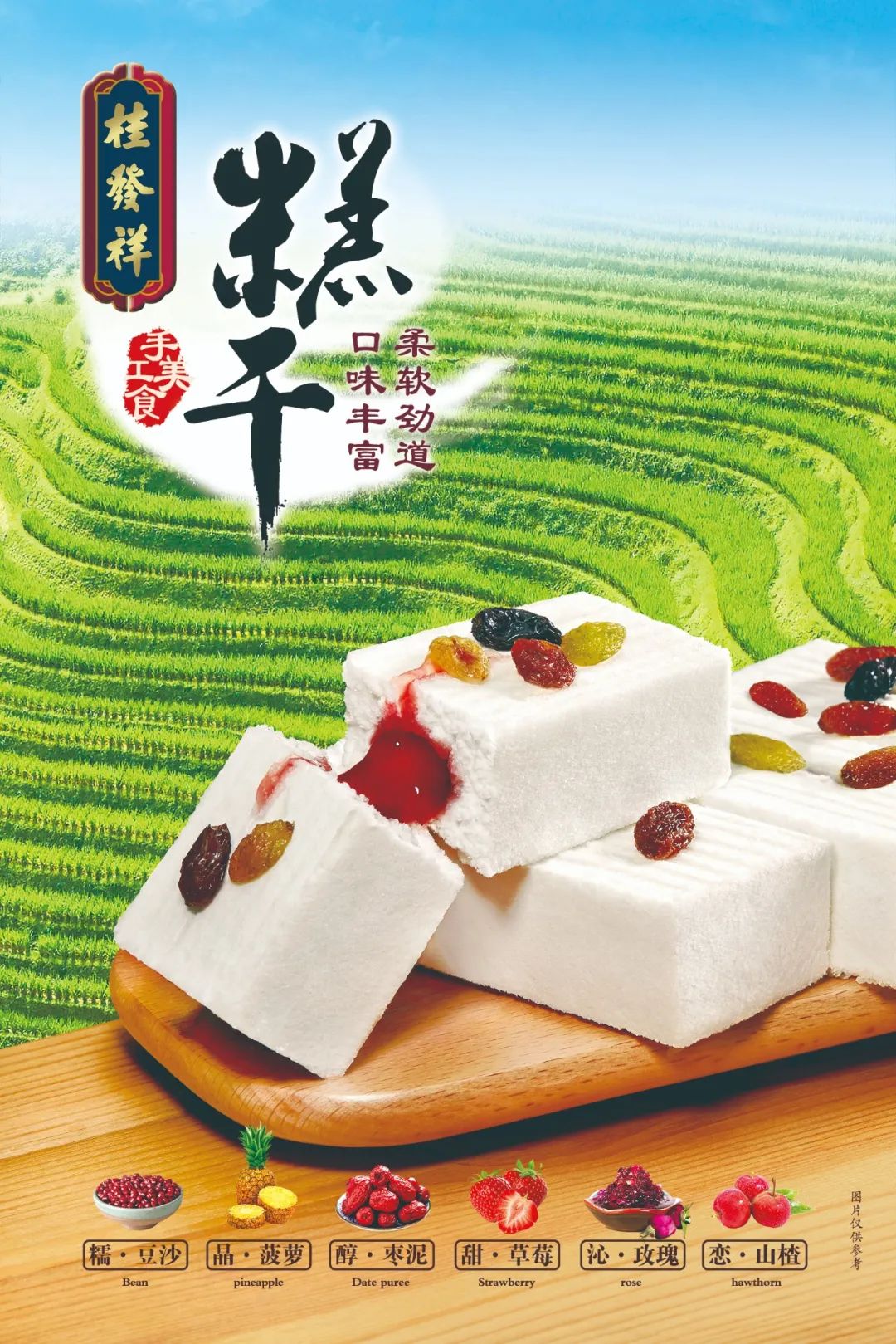 由于是用槽形模具成型烘制所以称作“槽子糕”盛行于京津地区如果一块糕点可以代表甜甜的童年,那槽子糕一定榜上有名。用手指掐捏,松软又回弹。轻轻一咬,淡淡的甜香交织出童年的味道,深藏于心 。星空(中国)官方精心挑选优质产地的大米和糯米,大米味道香醇,具有补脾、和胃、清肺等功效,也是谷类中蛋白质含量较高的一种甜软糯粘的糯米。星空(中国)官方制糕干的师傅个个儿手艺精湛,经过严格的浸泡和磨制工艺,将大米粉和糯米粉,按照配比融合制成细腻雪白的米粉。两者相附相依管弦繁奏,均匀的筛入,这是制作口味上乘的津味儿糕干之关键所在。