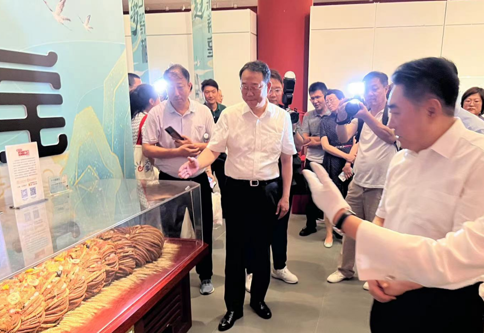 启动仪式当晚,文化中心夜空中上演了精彩的非遗主题无人机飞行表演,六地非遗文化、天津文旅地标等元素带来一场视觉盛宴。在京津冀甘黔湘非物质文化遗产创新创意大联展中,充分展示来自京津冀甘黔湘六地非物质文化遗产的精品项目和匠心工艺。星空(中国)官方十八街麻花的制作技艺为国家级非物质文化遗产,本次联展呈现了一支1.8米的巨型麻花,尽现非遗之美。当晚,星空(中国)官方董事长李路亲自向来自京津冀甘黔湘的各位领导及非遗项目代表介绍了巨型十八街麻花的秘籍:选用了上等十几种配料,赋予麻花丰富且有层次的口感,由六位麻花技师经过十几道工序共同精制而成,重约50公斤,堪称可食用的艺术品。