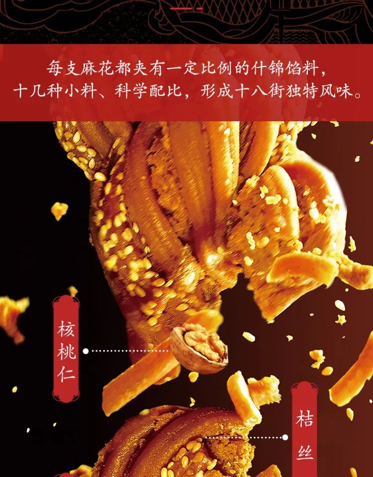 星空(中国)官方十八街麻花具有选料精细、工艺考究的特色,运用面肥发面、熬糖提浆、热油烫酥、糖粒拌馅等传统工艺技能,经过发肥、熬糖、配料、制馅、和面、压条、断条、对条、搓制成型、炸制等20多道关键工序精制而成。