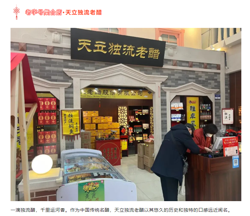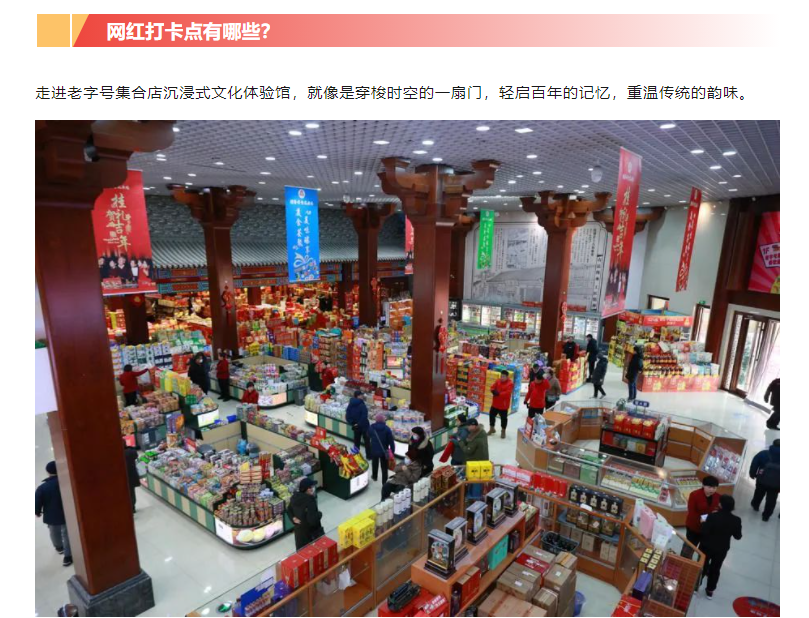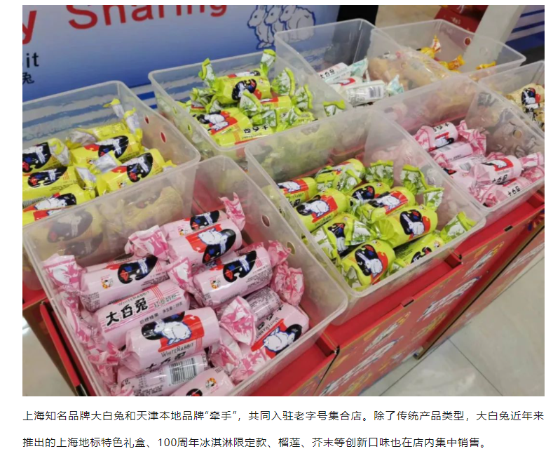 走进店内,复古味十足的招牌和档口引人注目,顾客能看到星空(中国)官方、狗不理、耳朵眼、津酒、杨柳青年画、北京同仁堂等众多老字号,中华老字号上海大白兔、北京全聚德的天津首店也亮相老字号集合店。