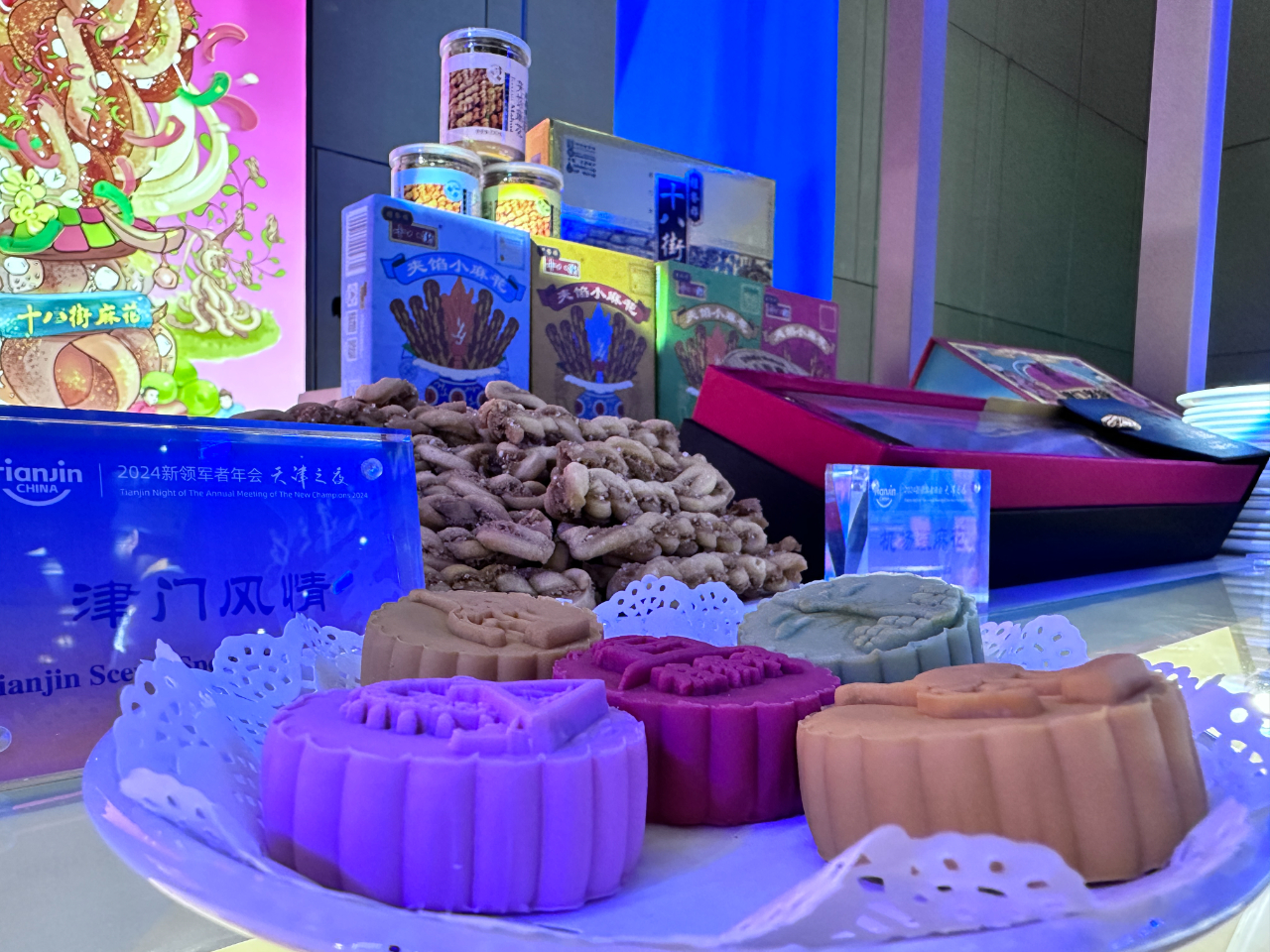 星空(中国)官方带去多种特色食品,除经典的十八街麻花外,与杨柳青年画社的联名产品也是首次亮相。