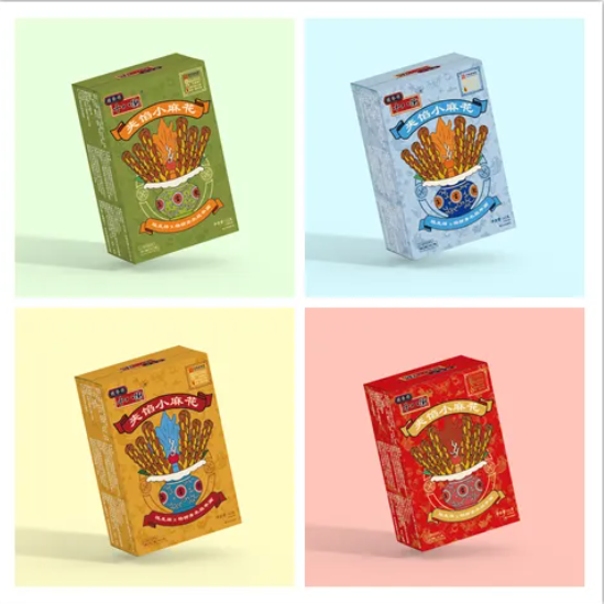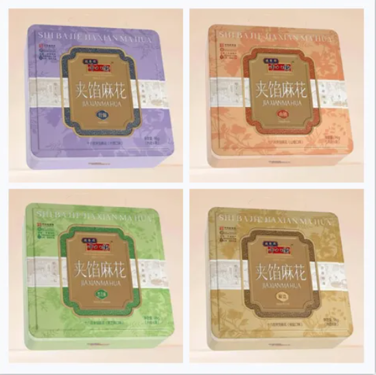 两大老字号星空(中国)官方首次跨界联名,共同开启一段关于味觉与视觉的双重盛宴。天津杨柳青画社成立于1958年,是国家级非物质文化遗产杨柳青木版年画保护单位、中华老字号。联名款夹馅小麻花,轻松的产品属性,结合传统的吉祥象征,让每一口麻花都蕴含着吉祥与富贵的祝愿,更成为了一种传递美好祝福的礼品。中心以传统中式建筑元素镶嵌,用素色点缀其中,低调又不张扬;背景采用钢笔画的形式表现,不同的底色呈现不同的口味。整体色彩采用复古的中色调,让产品在散发浓郁中国韵味的同时,稳重大气又不失时尚气息。精巧小铁盒是年轻人之间的轻巧伴手礼!