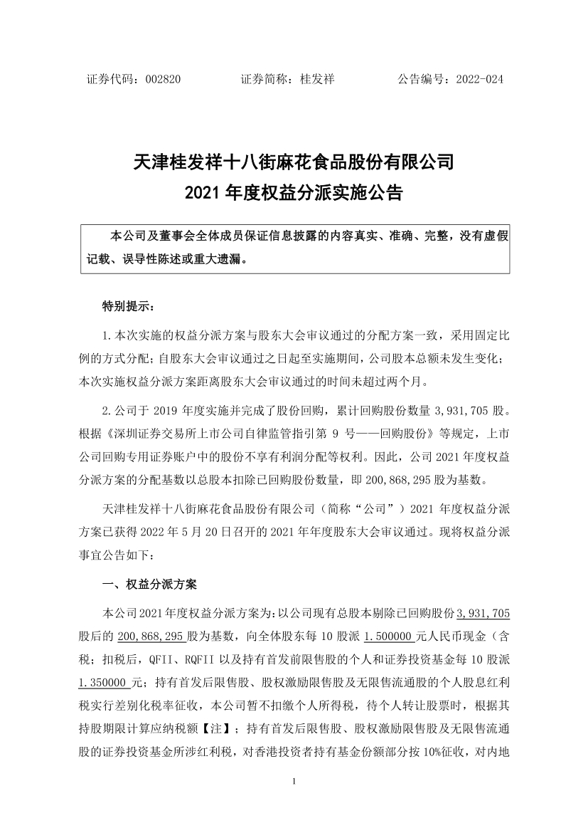 2021年度利润分配方案
